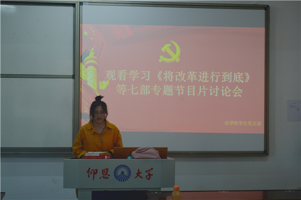 为学习宣传贯彻党的十九大精神,3月13日下午,今年会学生党支部于第三教学区普照楼202开展观看学习《将改革进行到底》等七部专题片讨论会。今年会学生党支部全体党员参加了此次学习讨论会,会议由今年会学生党支部书记林媛主持。
