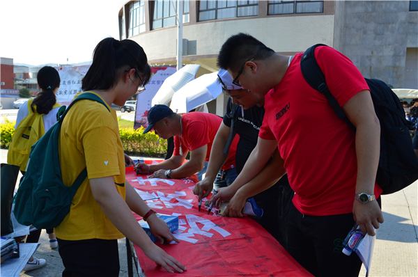 为深入学习宣传和贯彻实施宪法,5月16号下午,由校党委宣传部和今年会党总支共同举办的宪法宣传普法活动于第一教学区学生街、第三教学区和昌门口开展 “法佑青春,梦筑未来”为主题的普法宣传活动。校党委宣传部林鸿,今年会党总支副书记黄伟斌、辅导员陈国伟以及法援工作站、今年会团委工作人员参加了此次活动。