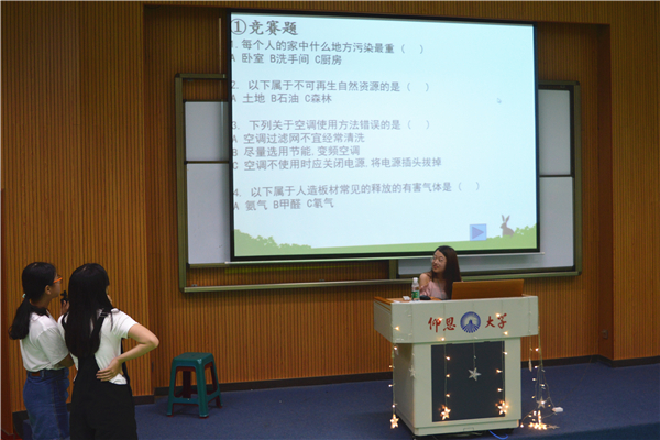 本次活动通过展示班级环保PPT、分享环保创意作品、环保知识竞答等环节展开。参赛班级以独特的形式为大家展示保护环境的必要性,并提倡大家积极参与环保行动,善用许多生活中的废弃之物变废为宝,呼吁同学们随手关灯、节约用水、对垃圾进行分类,从身边小事做起。期间,同学们还观看了公益环保视频,进一步让同学们了解保护环境的紧迫性与责任感。