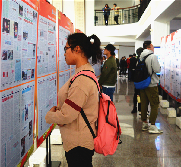 今年会学子观看庆祝改革开放40周年校报展