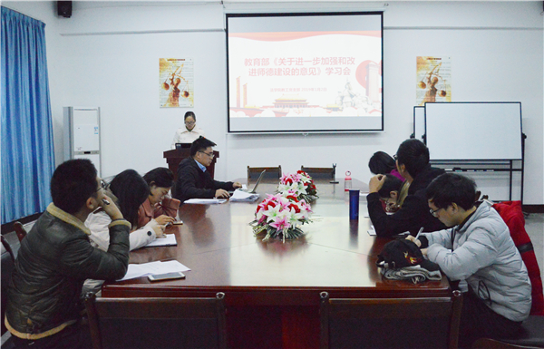 今年会教工党支部召开《教育部关于进一步加强和改进师德建设的意见》主题学习会