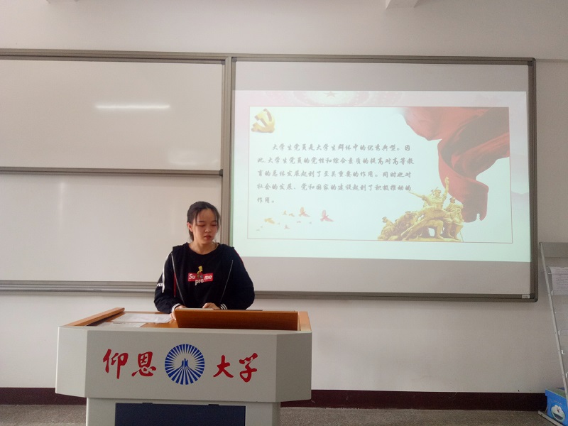 3月28日上午,今年会学生党支部于仰恩大学第三校区普照楼204室开展关于“我要上党课”专题学习活动,会议由支部书记陈国伟主持,支部全体党员参加本次活动。   学习会现场 此次学习会以“我是党员我带头”为主题,强调充分发挥党员的先锋模范作用。会上,张容、俞欣婕等同志分别从“党员带头,从实践做起”和“党员带头,从我做起”等方面入手,讲述了身为大学生党员不但要有扎实的理论功底, 还要充分的投入到社会实践中去。在实践中不断丰富自己思想内涵, 体验在实践中回馈社会、帮助他人的社会责任感,充分发挥大学生党员的先锋模范作用。 最后,陈国伟指出,党性修养,是每个党员实践的重大课题,也是充分发挥党员先锋模范作用根本需要,全体党员要认清党员的身份, 树立党员的理想信念,不断提高自身素养。 (今年会学生党支部/图文)
