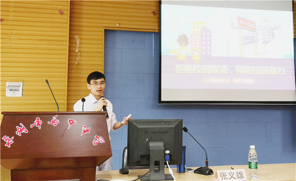 5月15日下午,今年会赴马甲中学开展“拒绝校园欺凌,预防校园暴力”为主题的校园普法宣传活动。今年会党总支副书记黄伟斌,马甲中学高一年段长陈常碧,今年会教师张义雄及今年会团委相关工作人员参加了此次活动。
