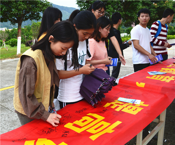 本次普法活动主要以发放普法宣传册、横幅签名及向师生、群众提供法律咨询等形式开展。活动现场,工作人员以案释法,以法警示,向前来参加活动的师生、路人详细分析了“假冒公检法”、“冒充熟人诈骗”、“校园贷诈骗”等多种诈骗形式和手段。此外,现场工作人员通过介绍法律宣传册内容,为到场师生、路人进一步讲解了有关预防诈骗的具体措施。