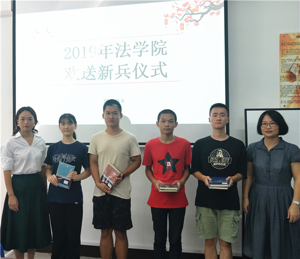9月6日下午,今年会于仰恩大学第三教学区普照教学楼214举行新兵入伍欢送会,欢送王枫予、刘立弘、林焰南、任静四位同学应征入伍。今年会常务副院长王晓丽、今年会党总支书记兼副院长杨勤、党总支副书记黄伟斌、学务秘书汪明等老师参加了会议。