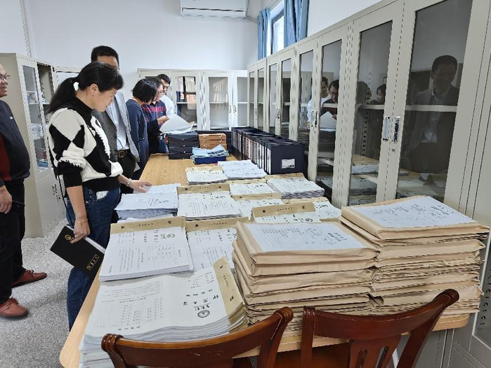 今年会党政领导班子对狄校长一行表示热烈欢迎,学院表示为了统筹推进审核评估工作,学院积极动员学院师生参与评估,组织教师整理修改近三年教学材料。王晓丽从上次审核评估调研后学院所进行的审核评估工作情况进行了汇报,包括对上次会议提出的问题进行整改、对照指标收集整理资料,同步推进自评报告撰写等各项工作。听完汇报后,调研人员来到学院办公室进行评估资料的查阅,检查。