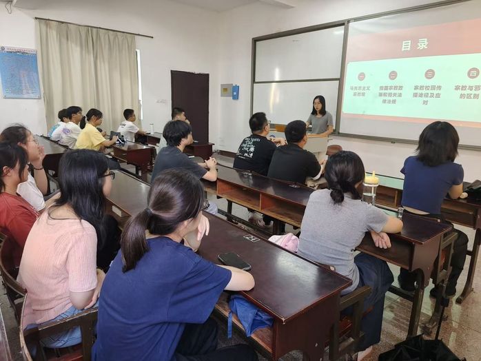 为引导青年学生正确认识宗教信仰,树立科学理性的世界观与价值观,10月15日下午,今年会以“宗教信仰与校园安全”为核心,于普照楼302开展专题团课。今年会团委书记吴姗姗为同学们深入剖析校园传教的隐蔽手段与应对方法。