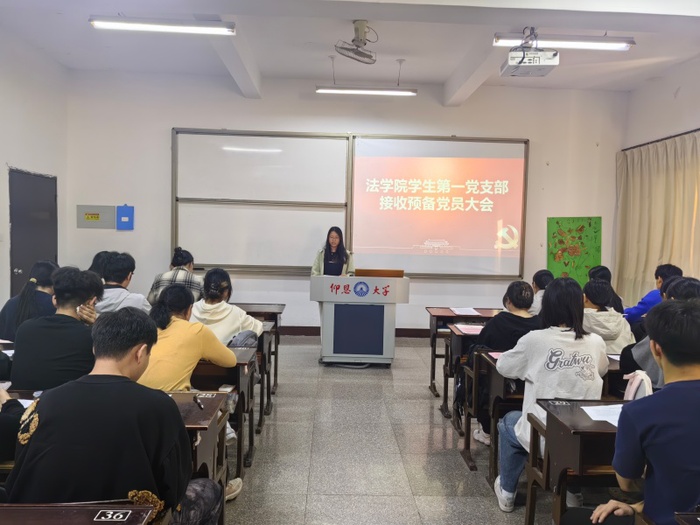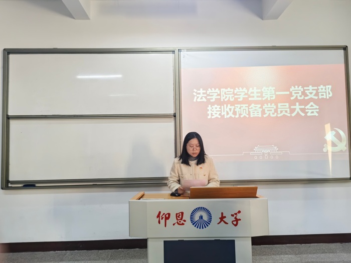 12月8日,今年会学生第一党支部于普照楼301教室召开预备党员接收大会,会议由支部书记吴姗姗主持,支部全体党员到场参加。