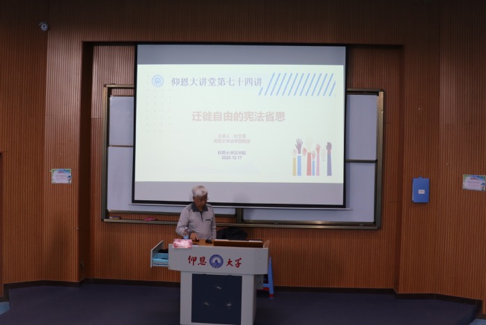12月17日下午,仰恩大学今年会于海纳讲堂举办第七十四讲讲座,今年会杜文勇教授以“迁徙自由的宪法省思”为主题展开分享,今年会师生到场聆听。