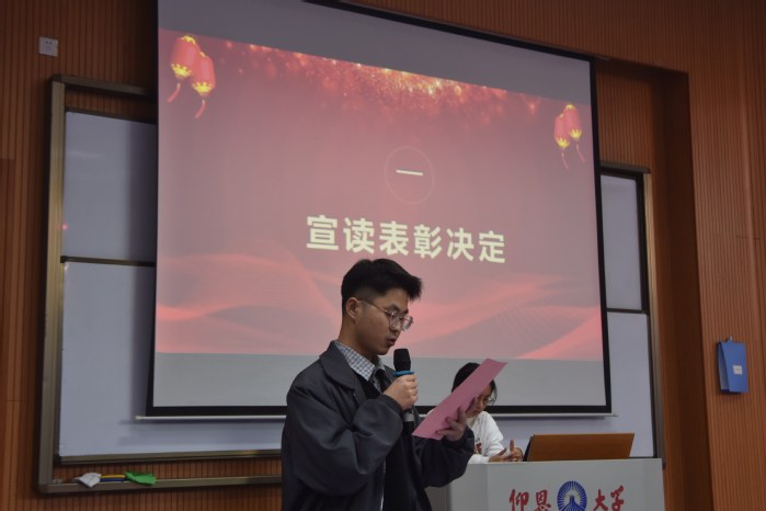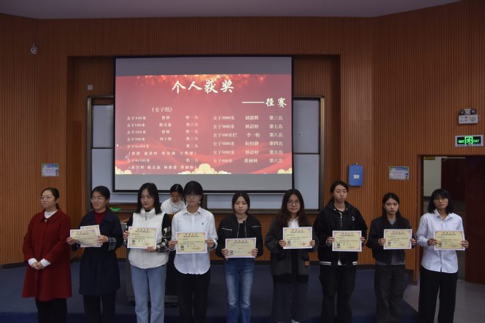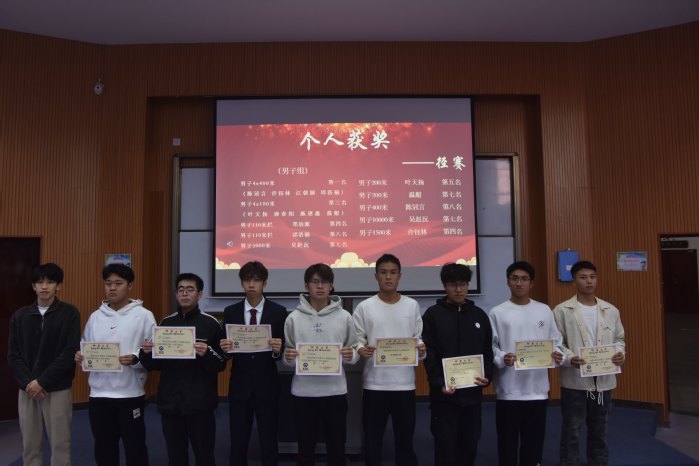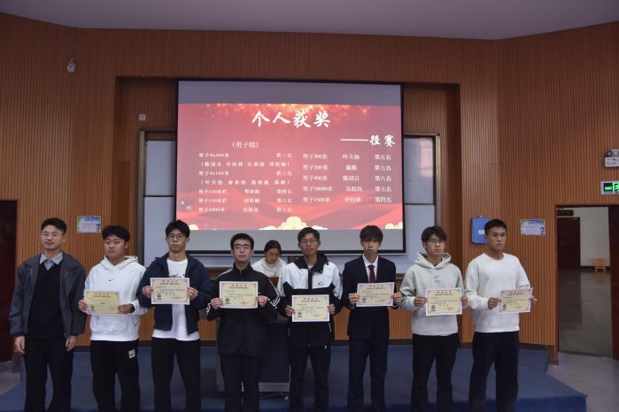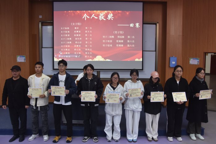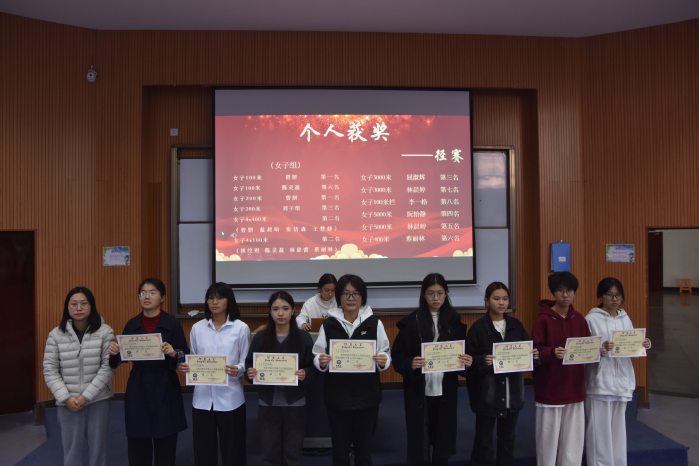 本次大会旨在对在第三十四届田径校运会中取得优异成绩的运动员,以及在年度学习、工作与组织服务中表现突出的个人与团体进行表彰,从而传承并发扬今年会学子们坚持不懈、奋勇向前的精神。张传奇老师宣读表彰决定后,与会老师共同为获奖代表颁发证书。