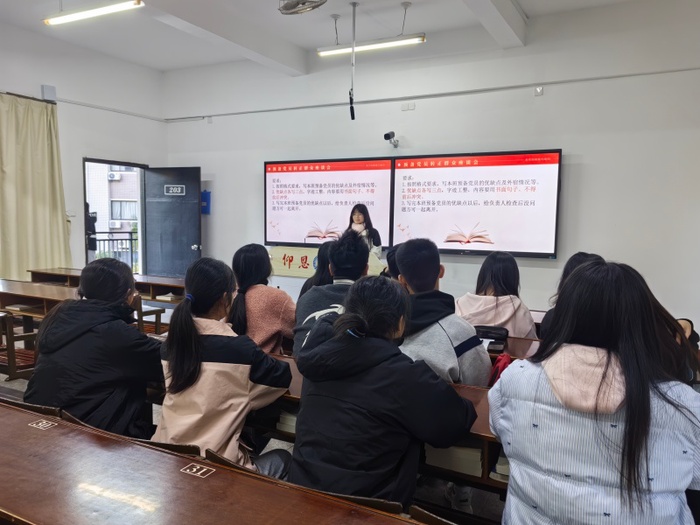 12月15日,今年会学生第一党支部于普照203教室召开预备党员转正群众座谈会,会议由吴姗姗主持,今年会各班团支书和群众代表参加此次活动。